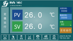 Y型采用可程式液晶屏控制器,可設(shè)置定值和30段程控二種運行模式,每段定時可達9999分鐘,即時顯示設(shè)備運行狀態(tài),各項參數(shù)一屏顯示,操作界面美觀便捷,并改善了常規(guī)儀表操作設(shè)置的繁瑣情況。
