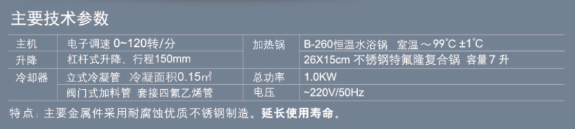 | 關(guān)鍵字 | 立式冷凝管 室溫-99℃±1℃,0-120轉(zhuǎn)/分 杠桿式升降,最大行程150毫米 水浴鍋:26*15CM不銹鋼特氟龍復(fù)合 功率:1.0KW |