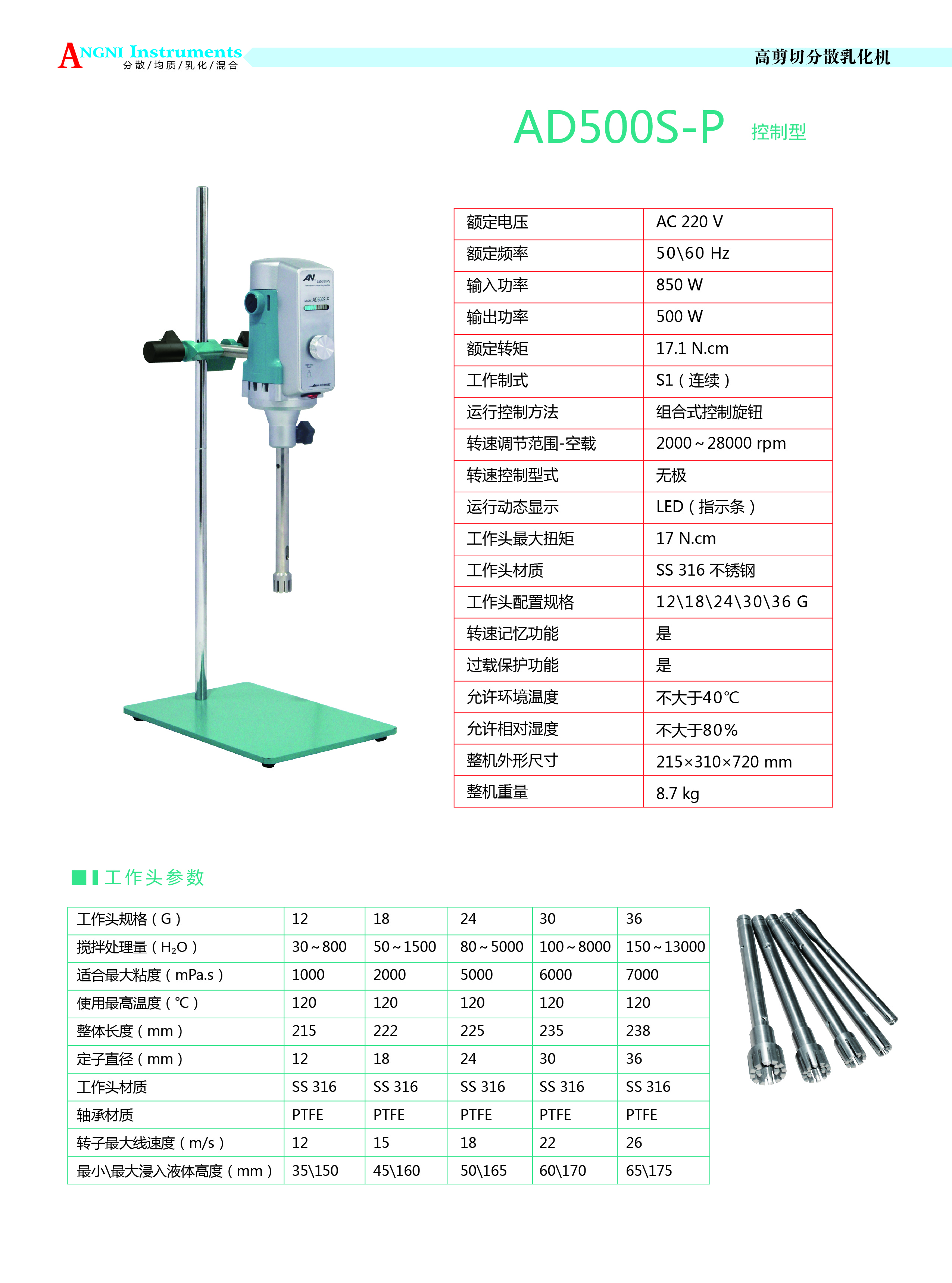 上海昂尼高剪切分散乳化機(jī)AD500S-P套裝四(停產(chǎn))