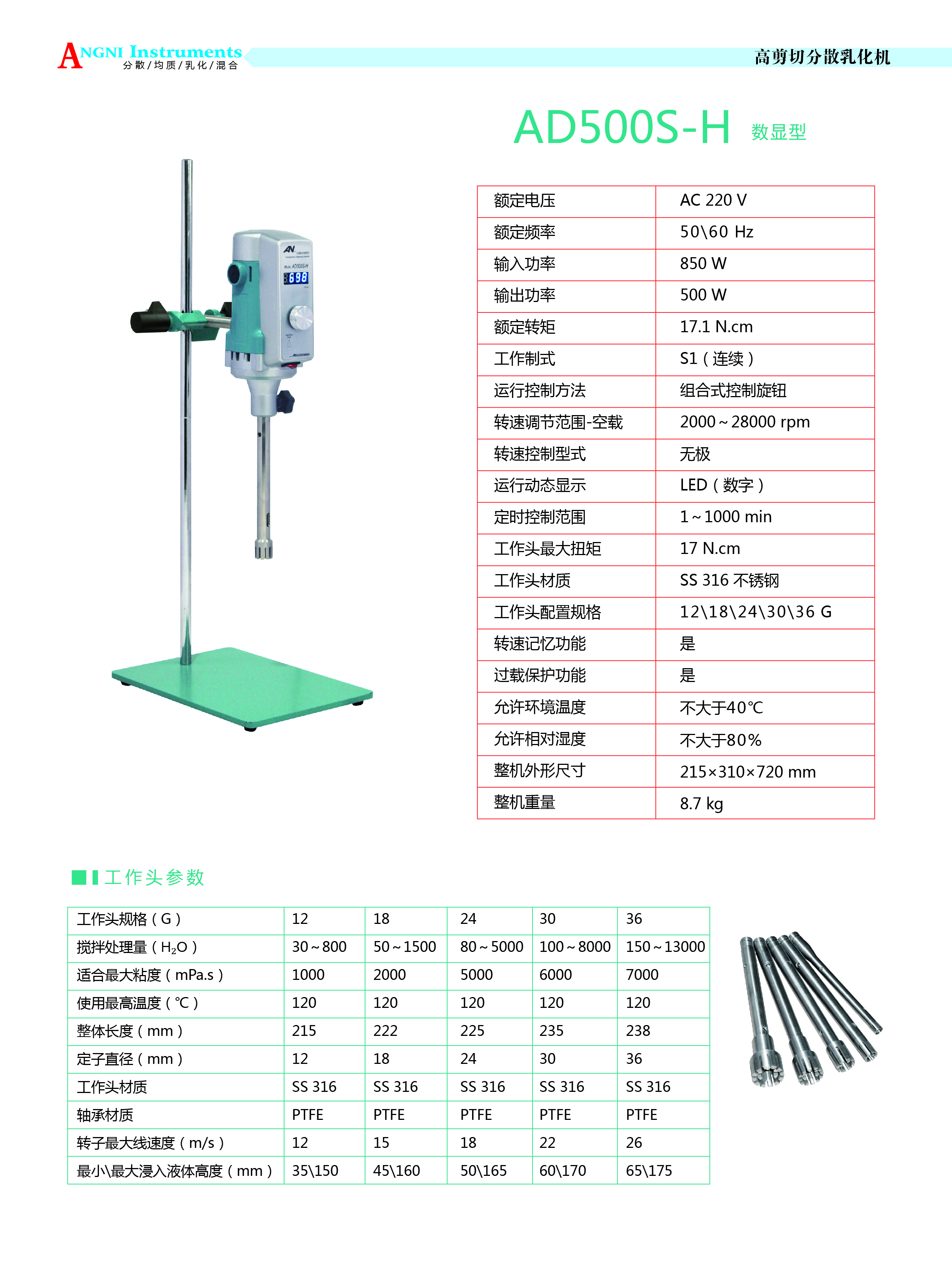 - 商品名稱:上海昂尼高剪切分散乳化機(jī)AD500S-H套裝二