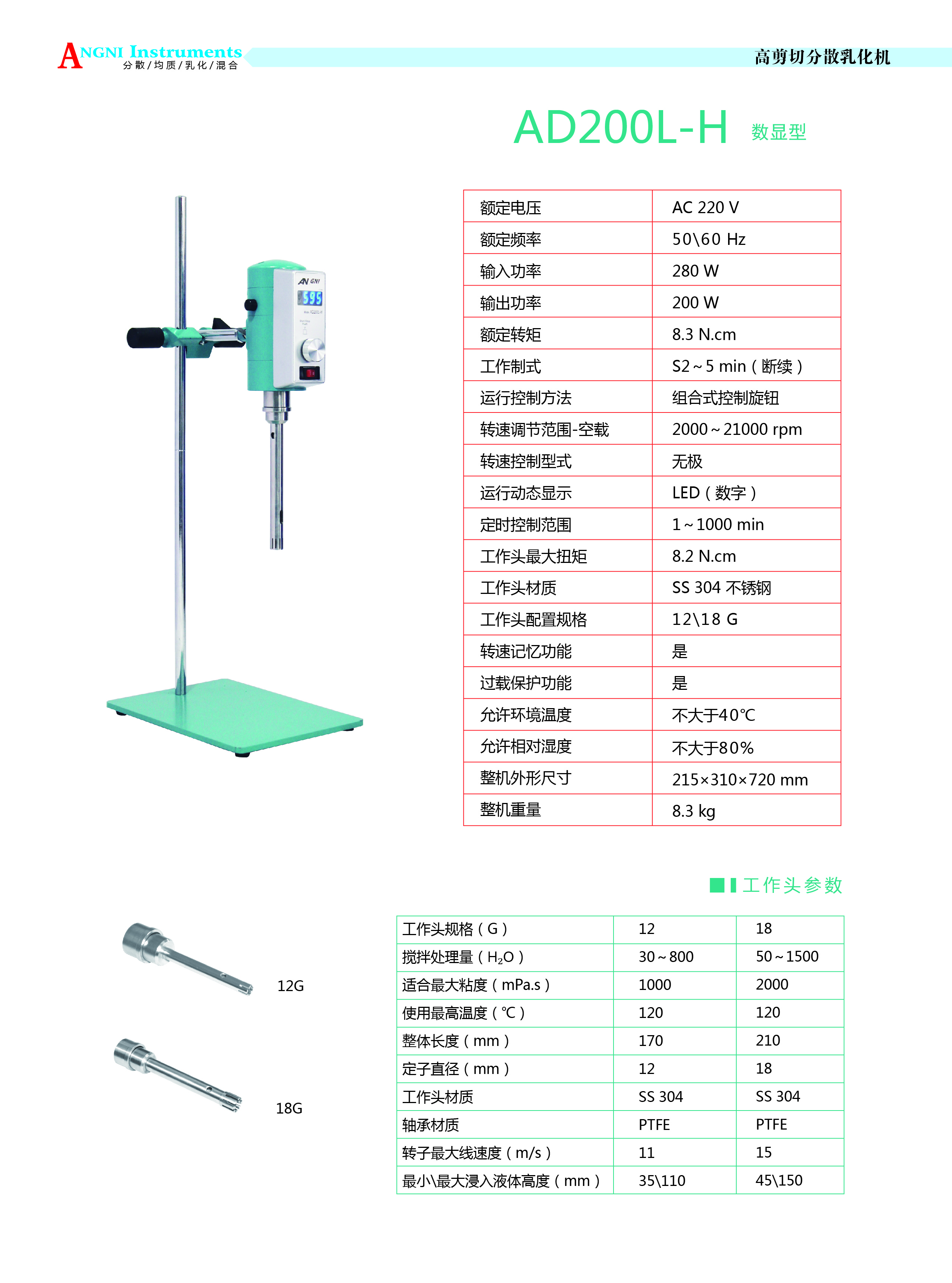 - 商品名稱:上海昂尼高剪切分散乳化機AD200L-H-主機(停產)