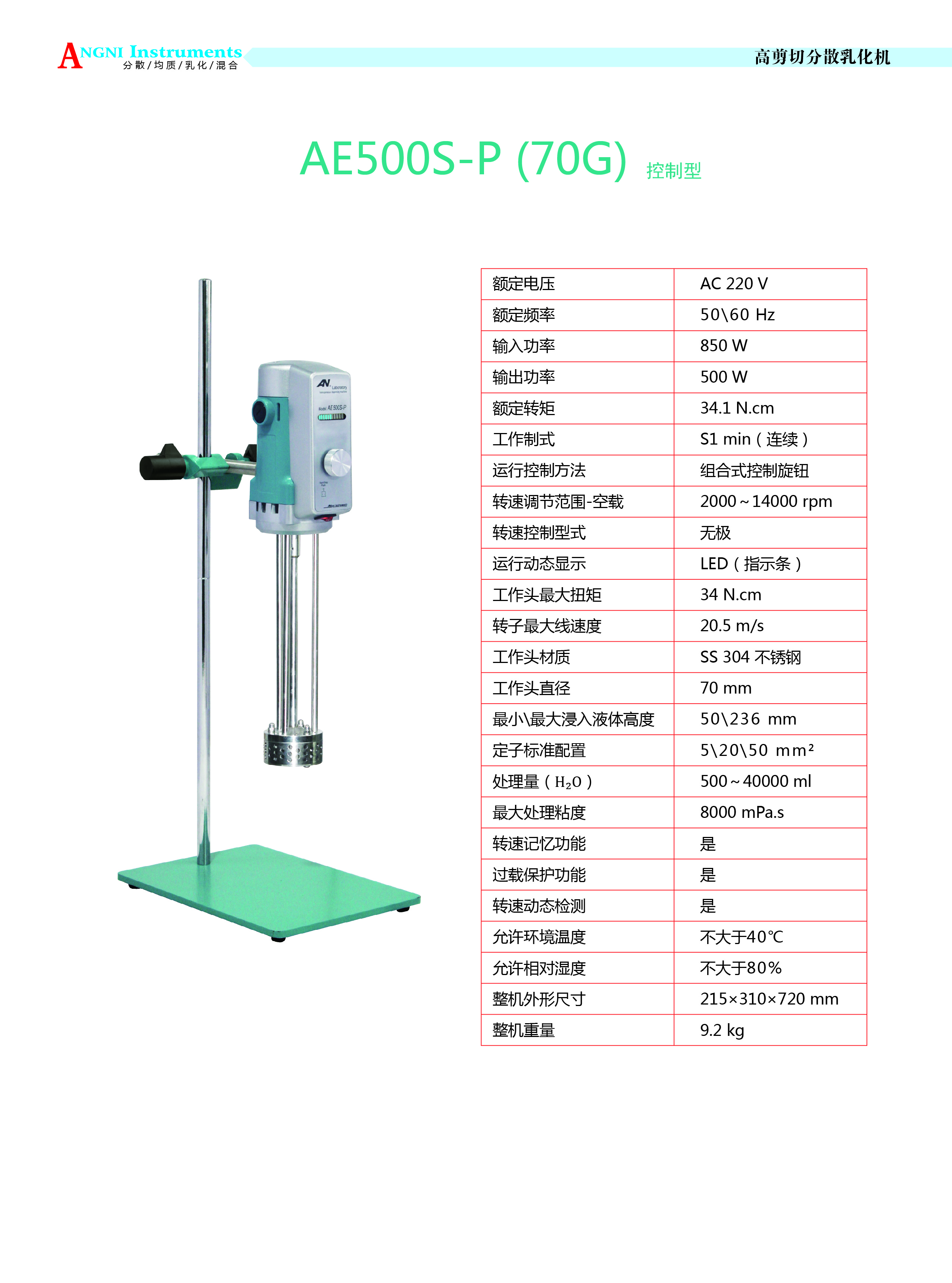 - 商品名稱:上海昂尼高剪切分散乳化機(jī)AE500S-P 70G(停產(chǎn))
