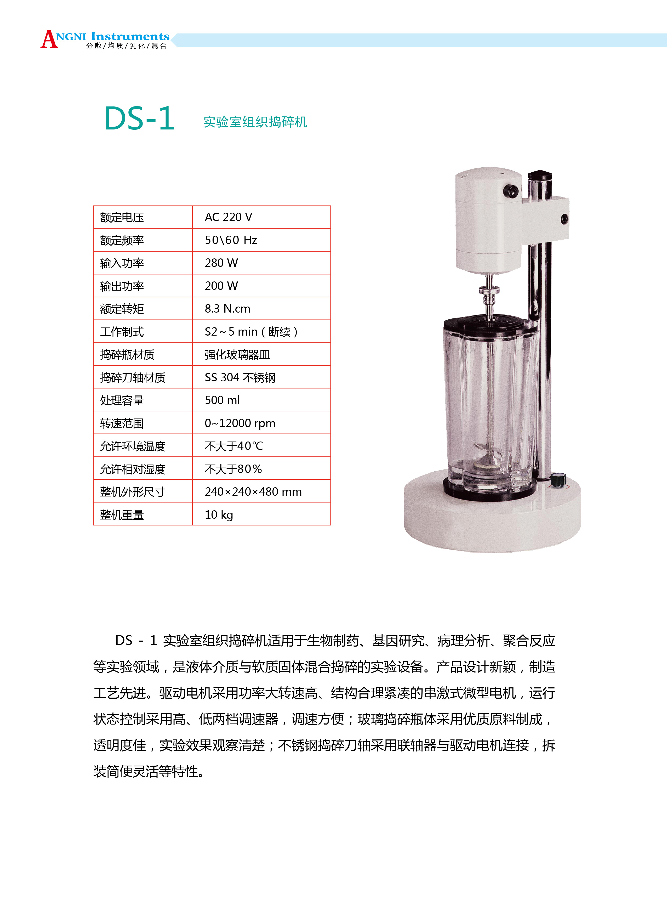 - 商品名稱:上海昂尼高速組織搗碎機(jī)DS-1(停產(chǎn))