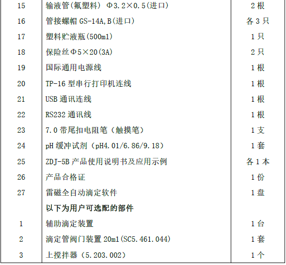 | 關(guān)鍵字 | 【ZDJ-5B型自動滴定儀(單管路)】ZDJ-5B主機、電極支架、10mL滴定裝置、213-01鉑電極、216-01銀電極、231-01型pH玻璃電極 |