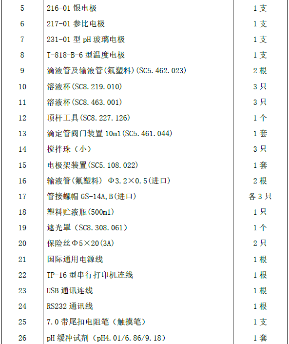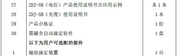 | 關(guān)鍵字 | 【ZDJ-5B-T型自動滴定儀(單管路)】ZDJ-5B-T主機(jī)、電極支架、10mL滴定裝置、T-828型溫度電極、213-01鉑電極、216-01銀電極、231-01型pH玻璃電極 |
