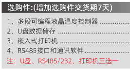 ● 可配打印機或RS485接口,用于連接打印機和計算機,能記錄溫度參數(shù)的變化狀況;(選配)