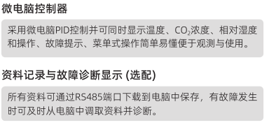● 具有溫度偏低、偏高和超溫報警,CO2濃度過高或過低報警;