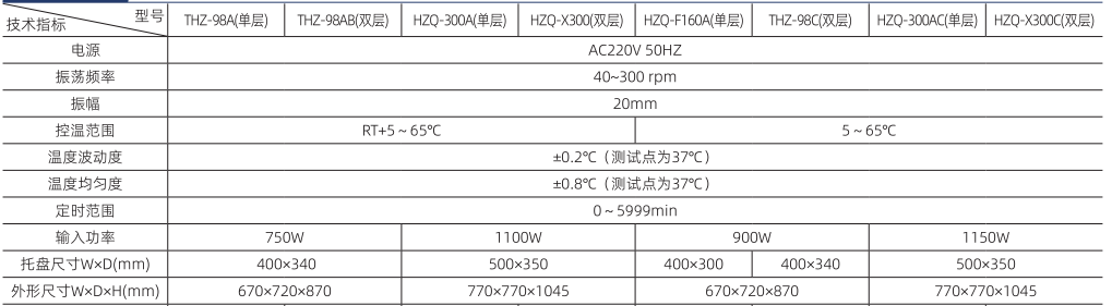注:帶“C”具有制冷功能恒溫振蕩器,HZQ-F160A帶制冷功能。