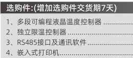 注1:U盤、RS485/232、打印機(jī)三選一 注2:DHG-9013A,PH-010(A)不能選配嵌入式打印機(jī)、RS485接口及通訊軟件