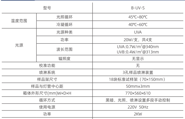同其它實(shí)驗(yàn)室加速試驗(yàn)一樣,不能利用B-UV的試驗(yàn)結(jié)果替代天然曝曬來(lái)判定材料的實(shí)際耐久年限,B-UV產(chǎn)品提供的是對(duì)比試驗(yàn)條件,由于紫外光是造成戶外產(chǎn)品耐用度下降的主要光照因素,加上熒光燈管相對(duì)穩(wěn)定的光譜能量分布和低廉的價(jià)格,紫外光老化試驗(yàn)箱以快捷、便利和經(jīng)濟(jì)的優(yōu)勢(shì)成為使用廣泛的耐候測(cè)試機(jī)種。B-UV作為簡(jiǎn)易機(jī)型,特別適合經(jīng)濟(jì)條件有限的實(shí)驗(yàn)選用。
