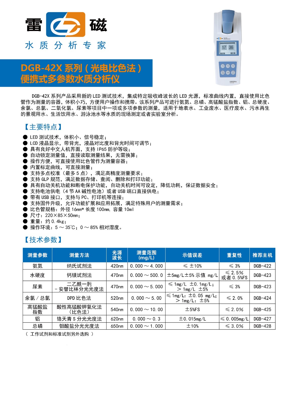 - 商品名稱:上海雷磁便攜式多參數(shù)水質(zhì)分析儀DGB-424(停產(chǎn))