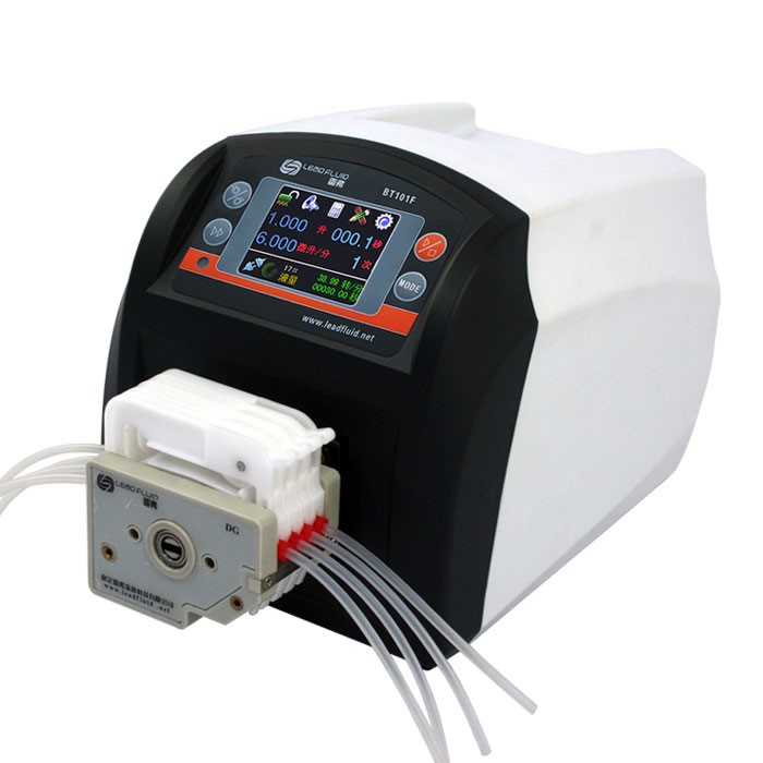 BT101F分配型智能蠕動(dòng)泵流量范圍0.00011~720毫升/分鐘。采用彩色液晶和觸摸屏技術(shù),操作界面簡(jiǎn)單,直觀,明了。主要適用于各種復(fù)雜的液體定量分配,適用于精確計(jì)量和定量給料,可以實(shí)現(xiàn)高精度的流量傳輸控制。對(duì)液量分裝精度要求高時(shí),使用液量分配模式更加方便;對(duì)產(chǎn)量要求高時(shí),使用時(shí)間分配模式更加方便;需要將一定液體分裝為若干份液體時(shí)請(qǐng)使用復(fù)制分配模式。設(shè)置為流量模式時(shí),完全等同于一臺(tái)流量型蠕動(dòng)泵。為了減小不必要的風(fēng)扇噪音,采用了智能溫控技術(shù)。在RS485通訊中,因?yàn)?span style="background-attachment: scroll; background-clip: border-box; background-color: transparent; background-image: none; background-origin: padding-box; background-position-x: 0%; background-position-y: 0%; background-repeat: repeat; background-size: auto; border-bottom-color: rgb(255, 102, 0); border-bottom-style: none; border-bottom-width: 0px; border-image-outset: 0; border-image-repeat: stretch; border-image-slice: 100%; border-image-source: none; border-image-width: 1; border-left-color: rgb(255, 102, 0); border-left-style: none; border-left-width: 0px; border-right-color: rgb(255, 102, 0); border-right-style: none; border-right-width: 0px; border-top-color: rgb(255, 102, 0); border-top-style: none; border-top-width: 0px; color: rgb(255, 102, 0); font-family: "Microsoft Yahei",宋體,Verdana,Arial,Helvetica,Sans-serif; font-weight: 400; margin-bottom: 0px; margin-left: 0px; margin-right: 0px; margin-top: 0px; padding-bottom: 0px; padding-left: 0px; padding-right: 0px; padding-top: 0px; text-shadow: none;">采用了MODBUS協(xié)議,更易于與其他控制設(shè)備如計(jì)算機(jī),人機(jī)界面,PLC等連接。