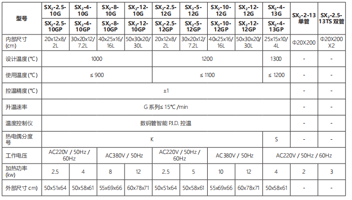 T 系列:陶瓷纖維爐膛、G 系列:耐火磚爐膛