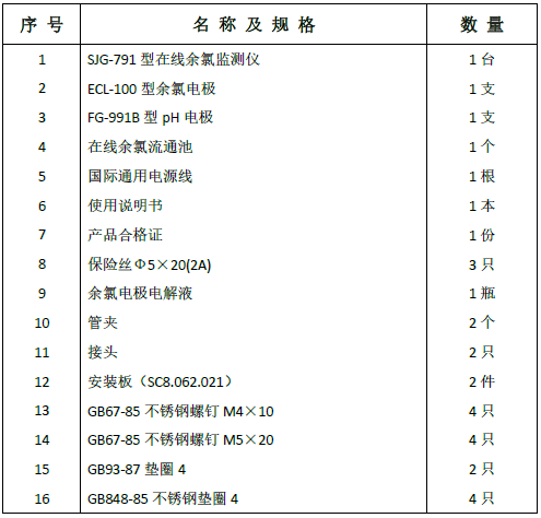 電子單元基本誤差 | 余氯 | ±4%(≥0.5mg/L)或±0.02mg/L(<0.5mg/L) |