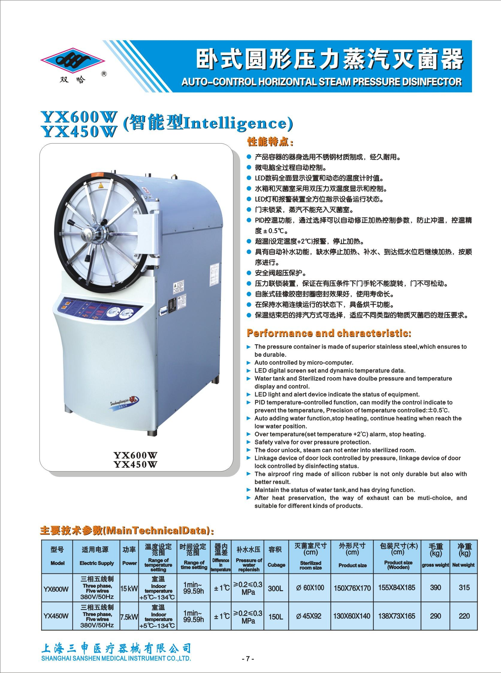 *上海三申臥式圓形壓力蒸汽滅菌器YX450W