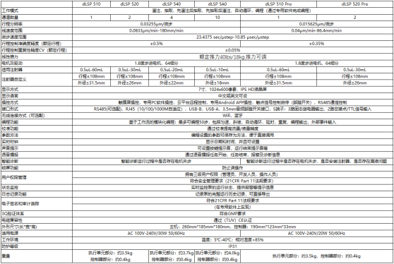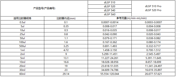 注:不同型號可適配最大射器規(guī)格不同,dLSP 510(Pro)-60ml;dLSP 520(Pro)-30ml;dLSP 540-20ml;dLSP 5A0-10ml