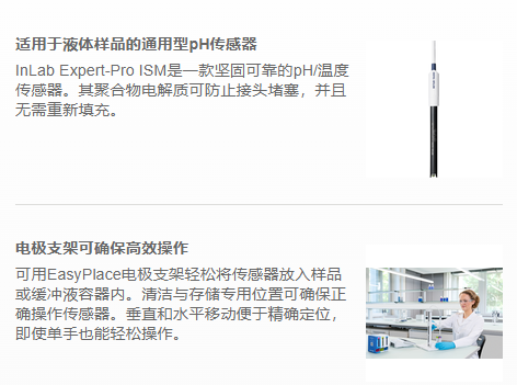 SD20 pH計,配備通用型InLab Expert-Pro ISM pH/溫度傳感器,具有自動傳感器識別功能。該套件包括一個高效的電極支架和pH緩沖液袋,用于初始校準。