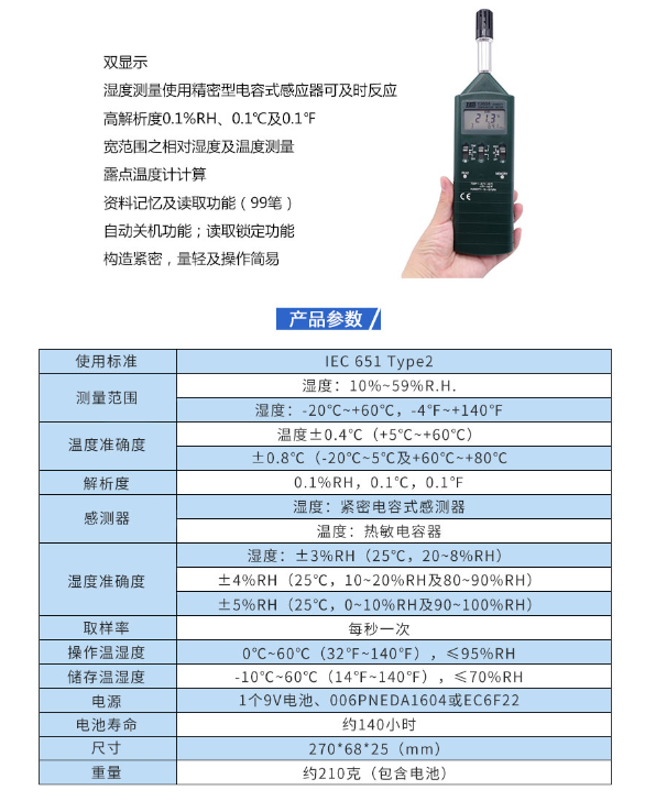 - 商品名稱:浙江孚夏溫濕度計TES-1360A