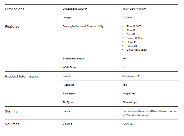 | 關(guān)鍵字 | 延長(zhǎng)型濾芯吸頭,1000 µl,預(yù)滅菌,盒裝(8x96)新產(chǎn)品,訂購(gòu)前請(qǐng)查詢匹配表 |