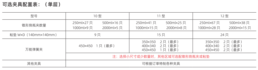 注2:三層疊加,最上層最高轉(zhuǎn)速為 250rpm;