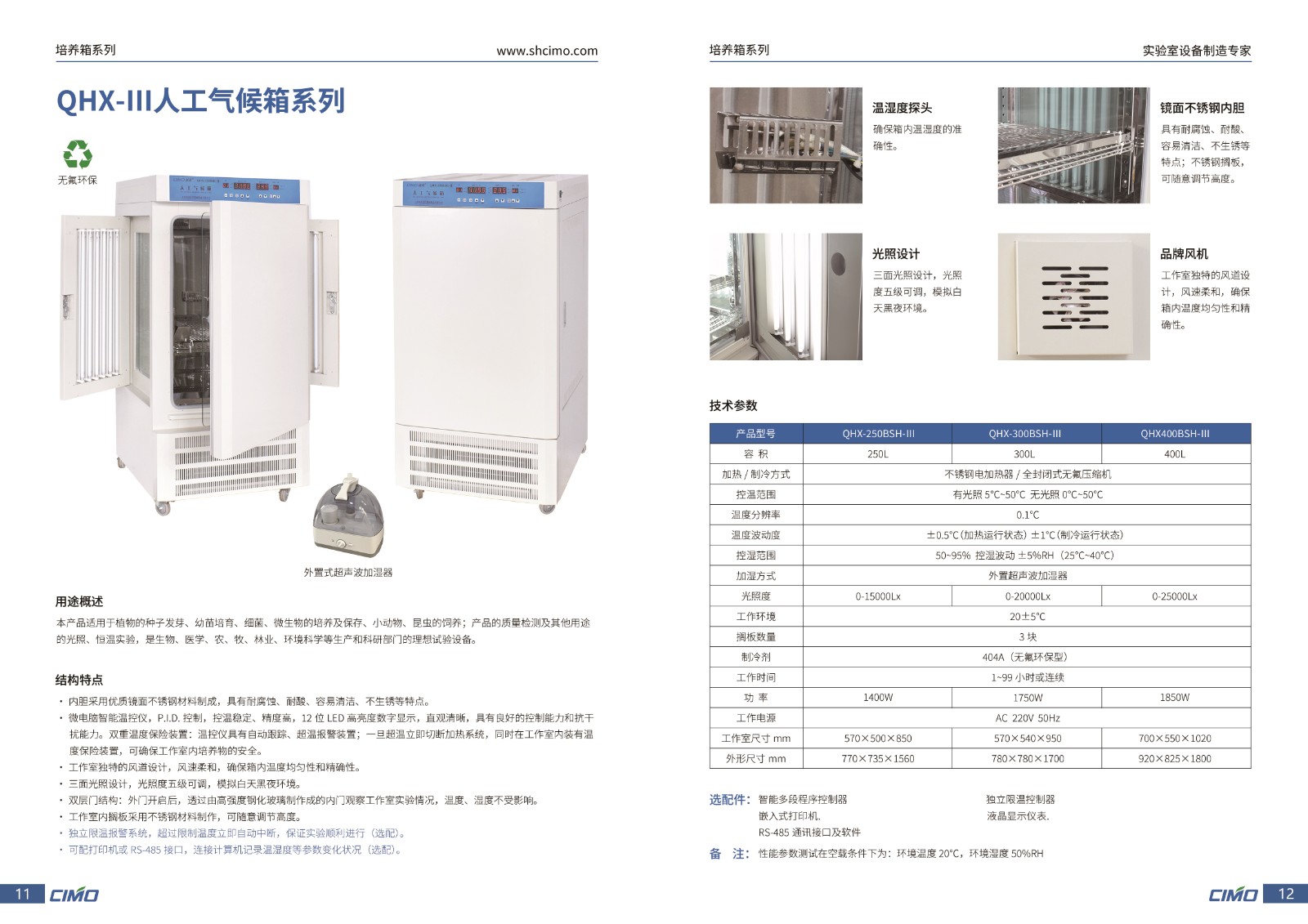 | 關(guān)鍵字 | 不銹鋼內(nèi)膽,控溫范圍:無(wú)光照0~50℃,有光照5~50℃,溫度分辨率:0.1℃,溫度波動(dòng)度:±0.5℃(加熱運(yùn)行狀態(tài))±1℃(制冷運(yùn)行狀態(tài))。濕度范圍50%~95%RH 光照度:250:0~15000Lx,300:0~20000Lx,400:0~25000Lx 采用進(jìn)口國(guó)際品牌壓縮機(jī);光照類型:三面光照 |