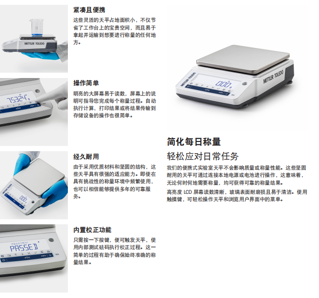 質(zhì)量保證: OIML/NTEP 認證; 前置水平儀; 過載保護; 樣品 ID