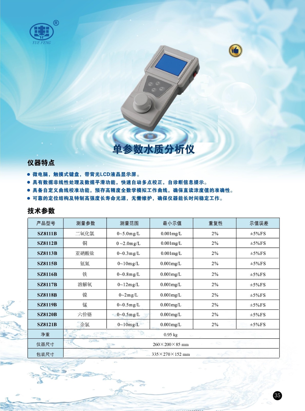 | 鐵 | 0~0.8mg/L | 0.001mg/L | 2% | ±5%F.S | |