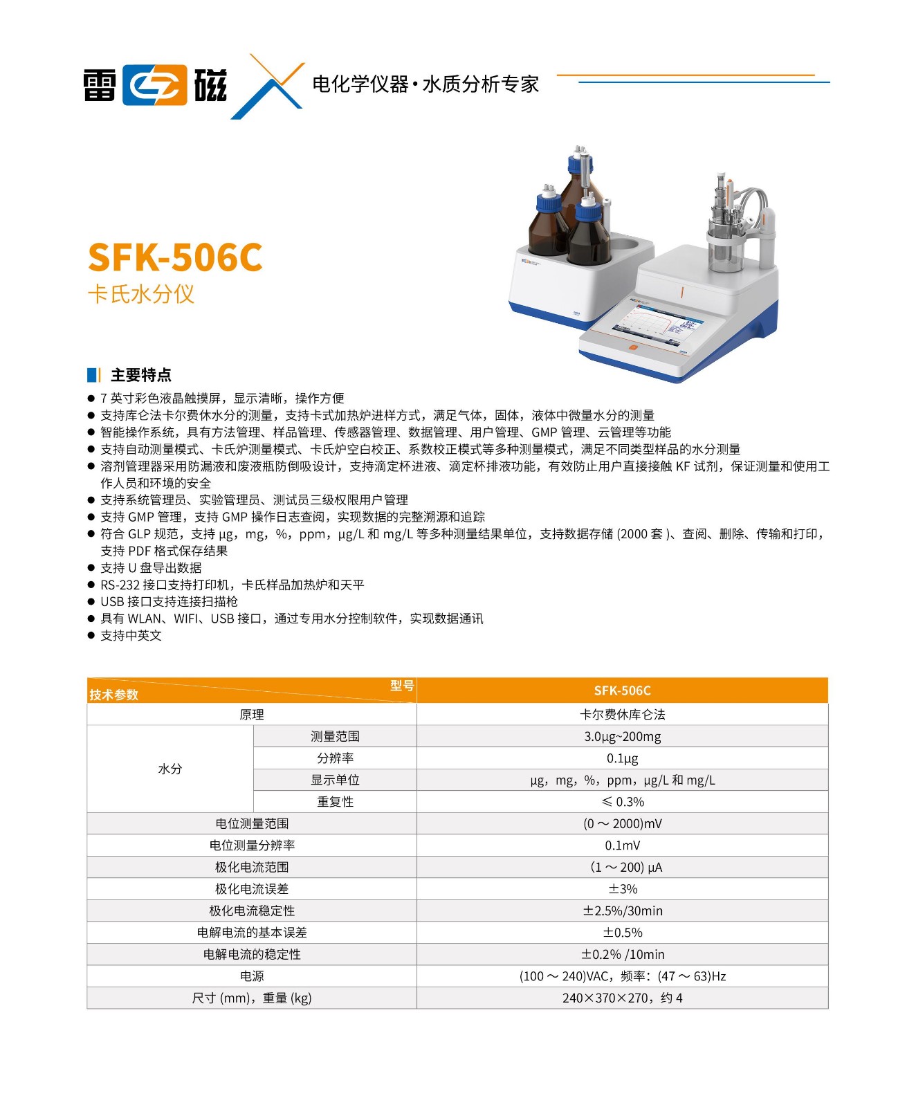 - 商品名稱:上海雷磁卡氏水分儀SFK-506C
