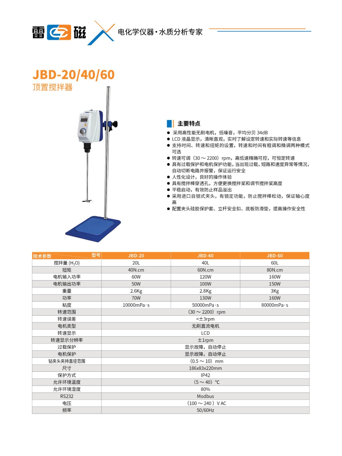 - 標(biāo) 題: 上海雷磁頂置攪拌器(套裝)JBD-40