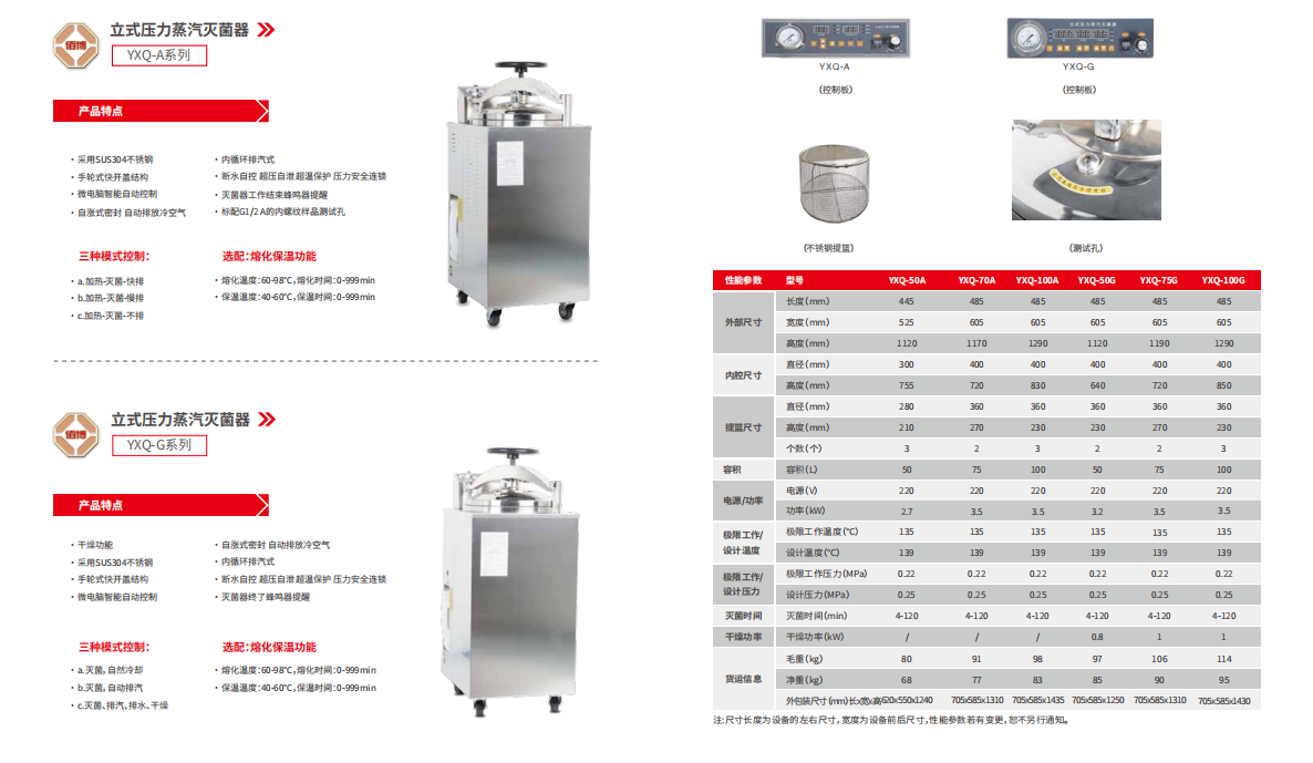 - 關(guān) 鍵 字: 容積:50L 內(nèi)腔尺寸:Φ400×630mm 最高工作壓力/溫度:0.22MPa/135℃