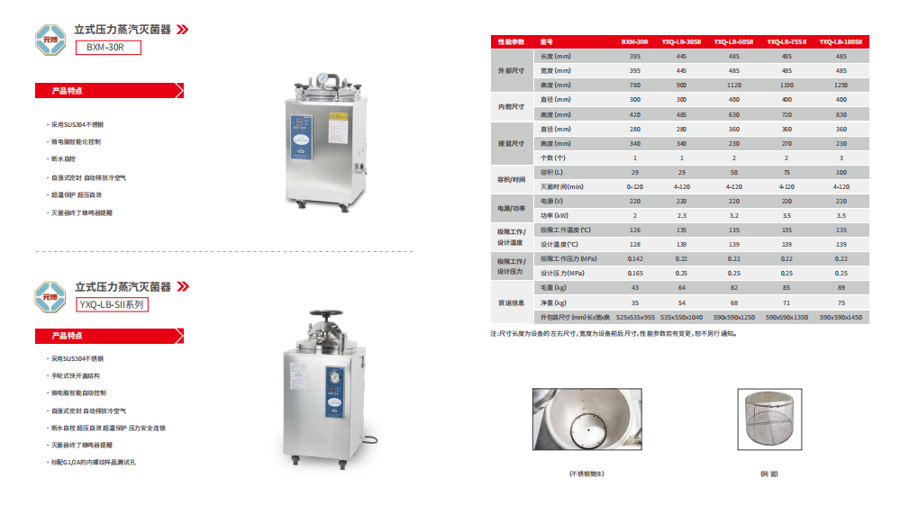 - 關(guān) 鍵 字: 容積:29L 內(nèi)腔尺寸:Φ300×485mm 最高工作壓力/溫度:0.22MPa/135℃
