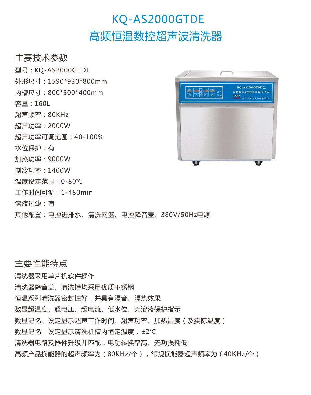 - 關(guān) 鍵 字: 清洗槽內(nèi)尺寸:800*500*400 容量L:160L 超聲功率W:2000 加熱功率W:9000 制冷功率W: 1400 降音蓋:手控