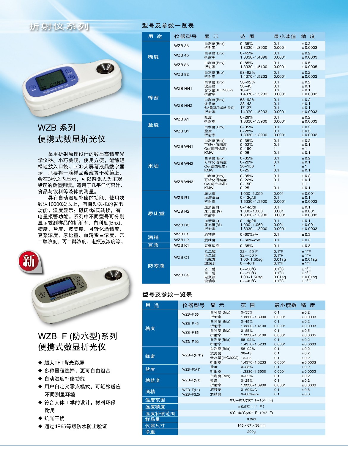 - 關(guān) 鍵 字: 用途:蜂蜜 溫度范圍:0℃-40℃(30°F-104°F) 溫度精度:±0.5℃(1°F) 溫度補(bǔ)償范圍:5℃-40℃(30°F-104°F) 樣品量:0.3ml