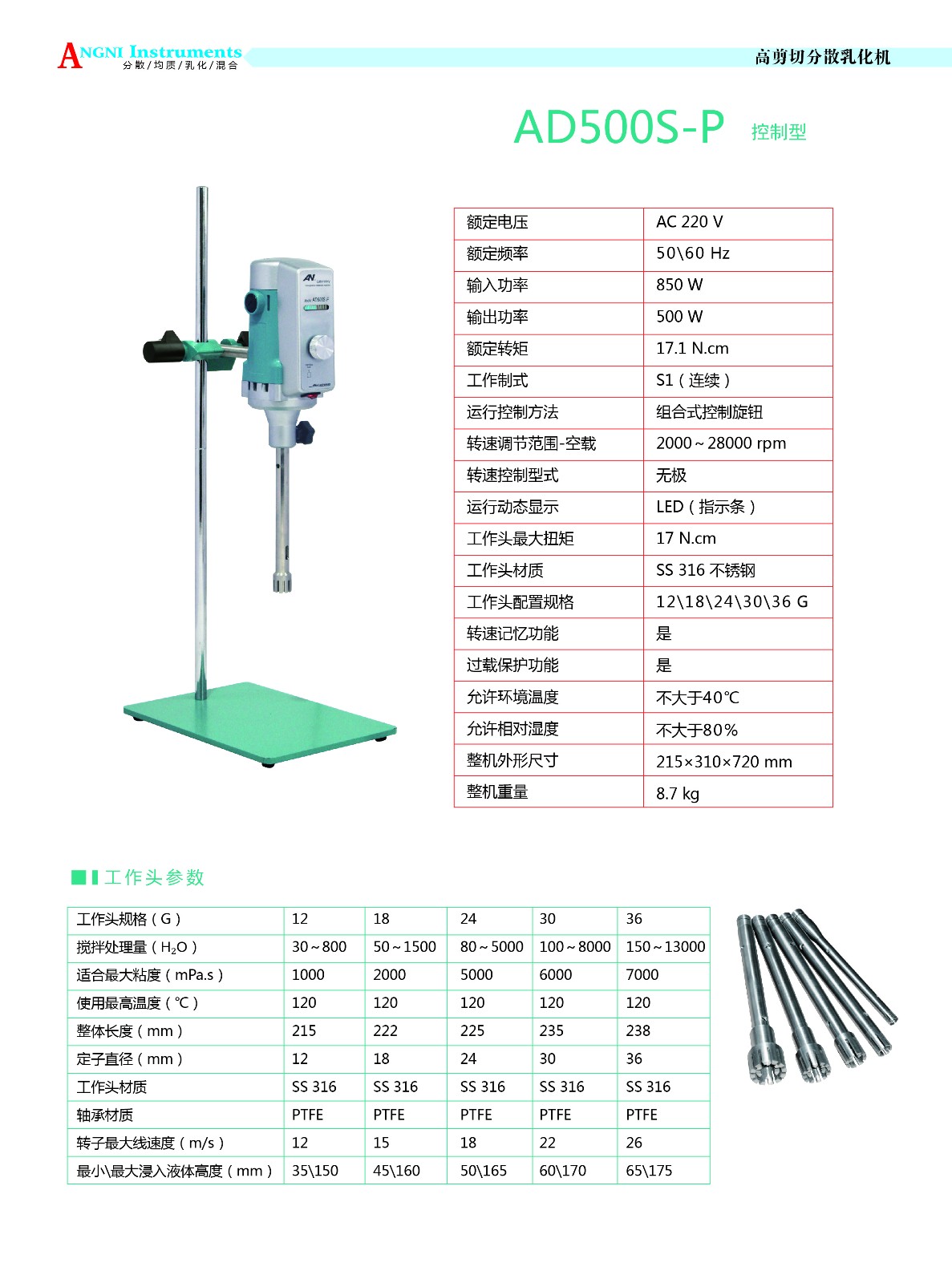 - 關(guān) 鍵 字: 轉(zhuǎn)速調(diào)節(jié)范圍:2000-28000rpm;工作頭適配規(guī)格: 24G,處理量:80-5000ml,輸出功率:500W,